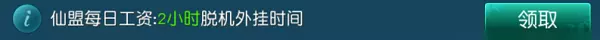 2. 挂机时间的获得有几种方式: 1) 每天在仙盟中,都可以领取2个小时挂机外挂时间