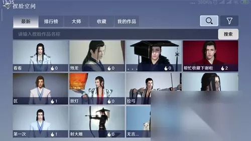 2、然后选择自己想要的捏脸作品(当然你也可以自己上传作品)。