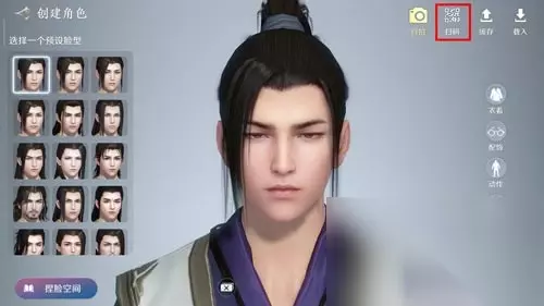 《天涯明月刀》捏脸数据导入方法介绍: 方法一:扫码导入 1、点击界面右上角“扫码”按钮,进入相册界面。