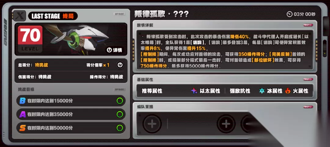 怪物组成、弱点和抗性如上,前战的小怪都是老朋友了,避免抗性就很好打,主要来看新BOSS叛律孤歌。终局/危局BOSS:叛律孤歌·???