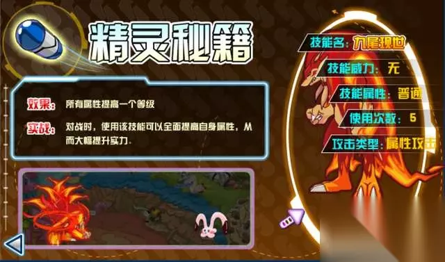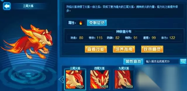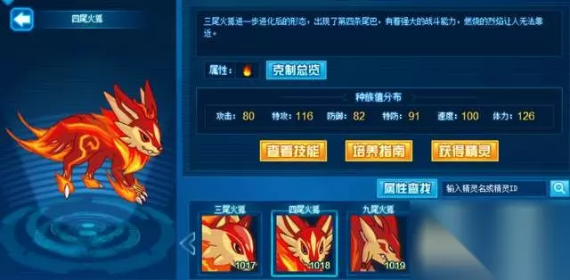 四尾火狐:三尾火狐的进阶形态,从这里开始收费。可能这也跟剧情吹嘘有一定关系,毕竟剧情都已经夸大了这个精灵,不过当时还是有玩家乐意买账。再怎么说,花米币买的精灵强度还是有的,而且九尾颜值综合当时还不算太糟糕,四尾三次之后进阶100%成功,有保底。