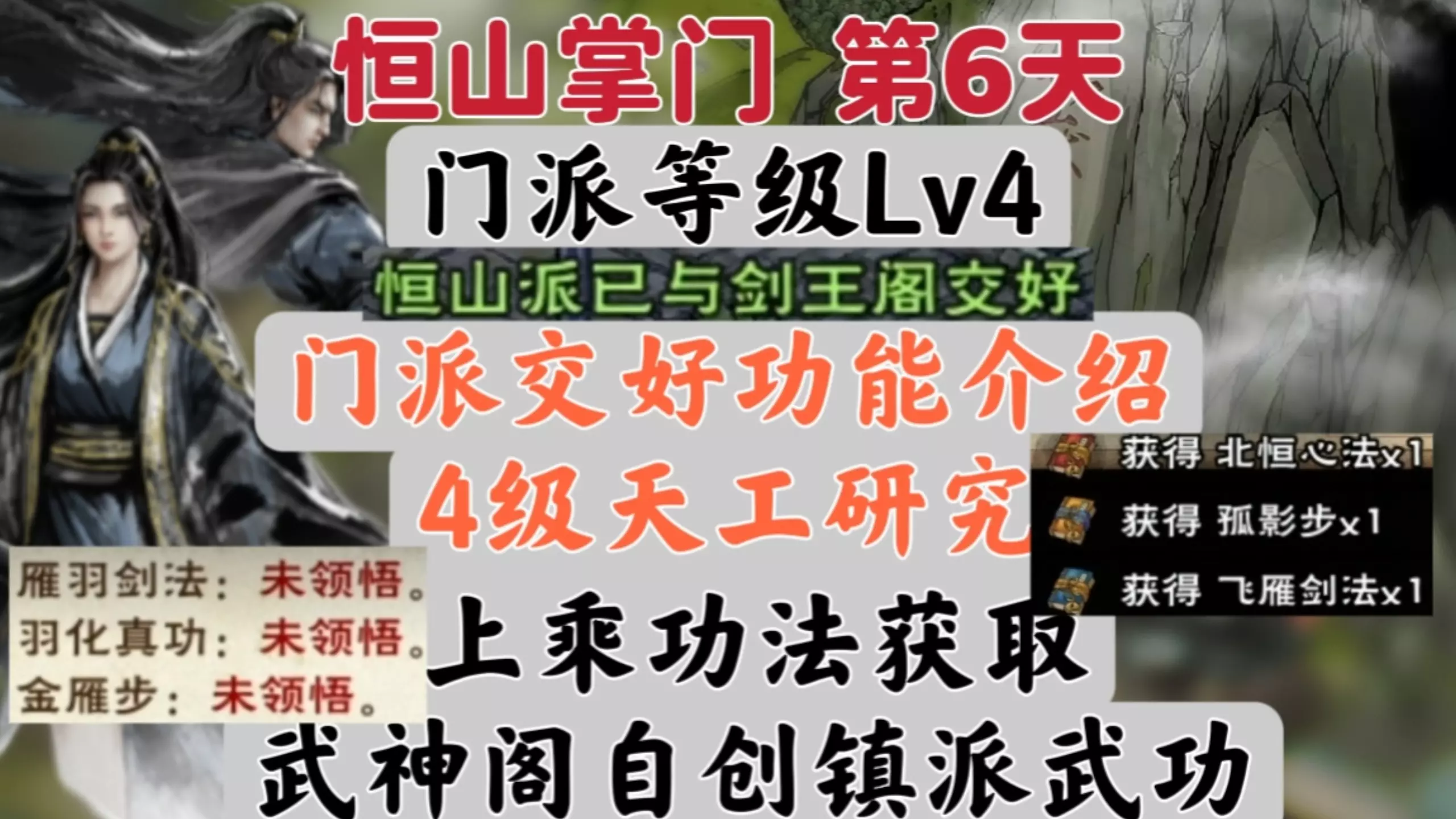 烟雨江湖:恒山掌门成长第六天 门派4级 毓秀殿解锁 门派交好 4级天工技研究 武神阁密室自创镇派武学