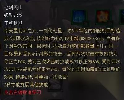 成就物理剑的核心buff,让物理剑一跃成为大荒第一爆发单点攻击手的最大凭借,唯一缺点就是持续时间较短,而弈剑本身并没有强控,所以开启的时间非常的关键。 【七剑】