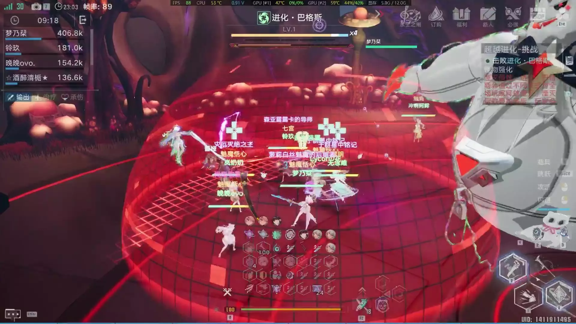 这是《幻塔》超越进化挑战的直播切片,以混子视角呈现方舟限时团击败进化·巴格斯的过程,展示了团队作战的游戏画面,为玩家提供该挑战的实战参考。
