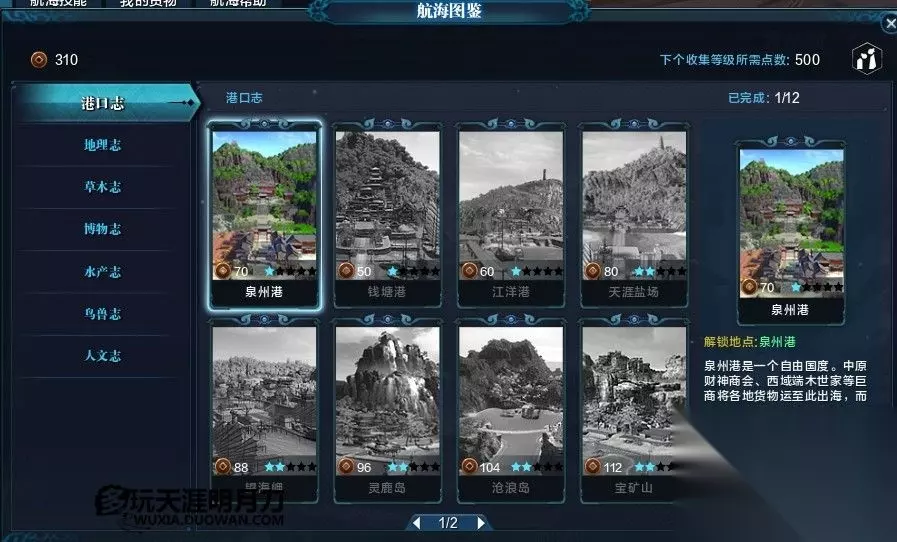 天涯明月刀7.11新版本中出了不少新玩法,相信很多玩家对此都十分好奇,这次给大家带来的是航海图鉴系统,这个玩法有点类似小彩蛋,之前并没有消息,那么这个航海图鉴系统该怎么玩呢?今天小编就给大家带来了海航图鉴攻略! 和侠客岛一样。也是必须完成一个支线任务才能触发。必须拥有船只才可达到任务指定岛屿(泉州港),没有及时造出船只的小伙伴也可以通过侠客岛船坞租凭。租出出海。 飘扬过海5分钟。(好好玩哦。emmmm好无聊) 到达泉州港。对话NPC触发航海图鉴玩法。