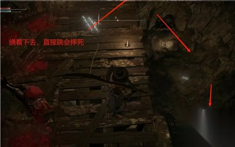 进去盖尔坑道后,我们可以根据一下路线点亮两个赐福点,方便我们跑图