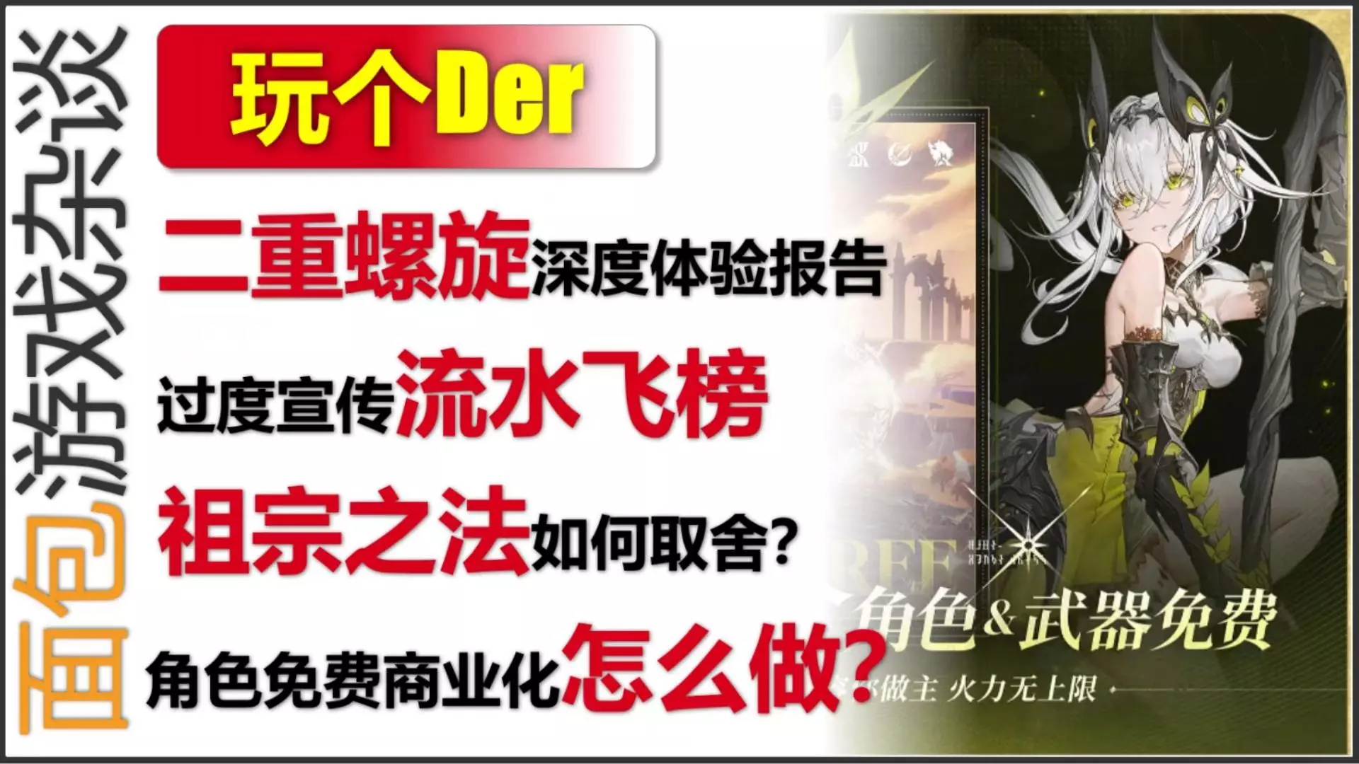 【玩个Der】二重螺旋60小时深度体验报告 -免费角色武器很好刷,1天就能满命 -金色装备才是最大肝点, 每个角色需要24个装备 -剧情太黑暗压抑 -毫无商业化…