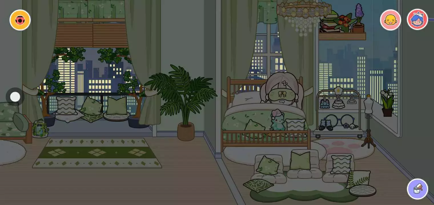 这是我的造的房子,先是卧室,再是大厅 ,然后是衣帽间,最后一个是绿色系穿搭💚(服装还是很模糊)