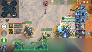 (旧版的分界点为30和50人口,新版给对局前中期提供了更大的舞台!) 10、查看/隐藏局内信息 点开局内信息会发现其中包含信息量巨大,即时战略类游戏需要经常了解对手和队友情况,从而及时做出针对性的应对。 点击右上角资源图标左边的“菜单”按钮,可以先看到敌我英雄装备属性信息。注意其中地方信息会根据“敌方英雄最后一次出现在我方视野内”的情况进行显示。