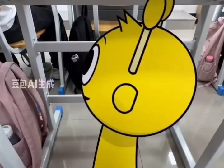 这是一则AI生成的生活记录帖,展示了蓝色卡通杰文形象,先是多个杰文出现在家门口步道,随后单个杰文靠近,被脚踹后倒地,后方还有其他杰文,记录了七年级早期杰文的趣味AI创作内容。