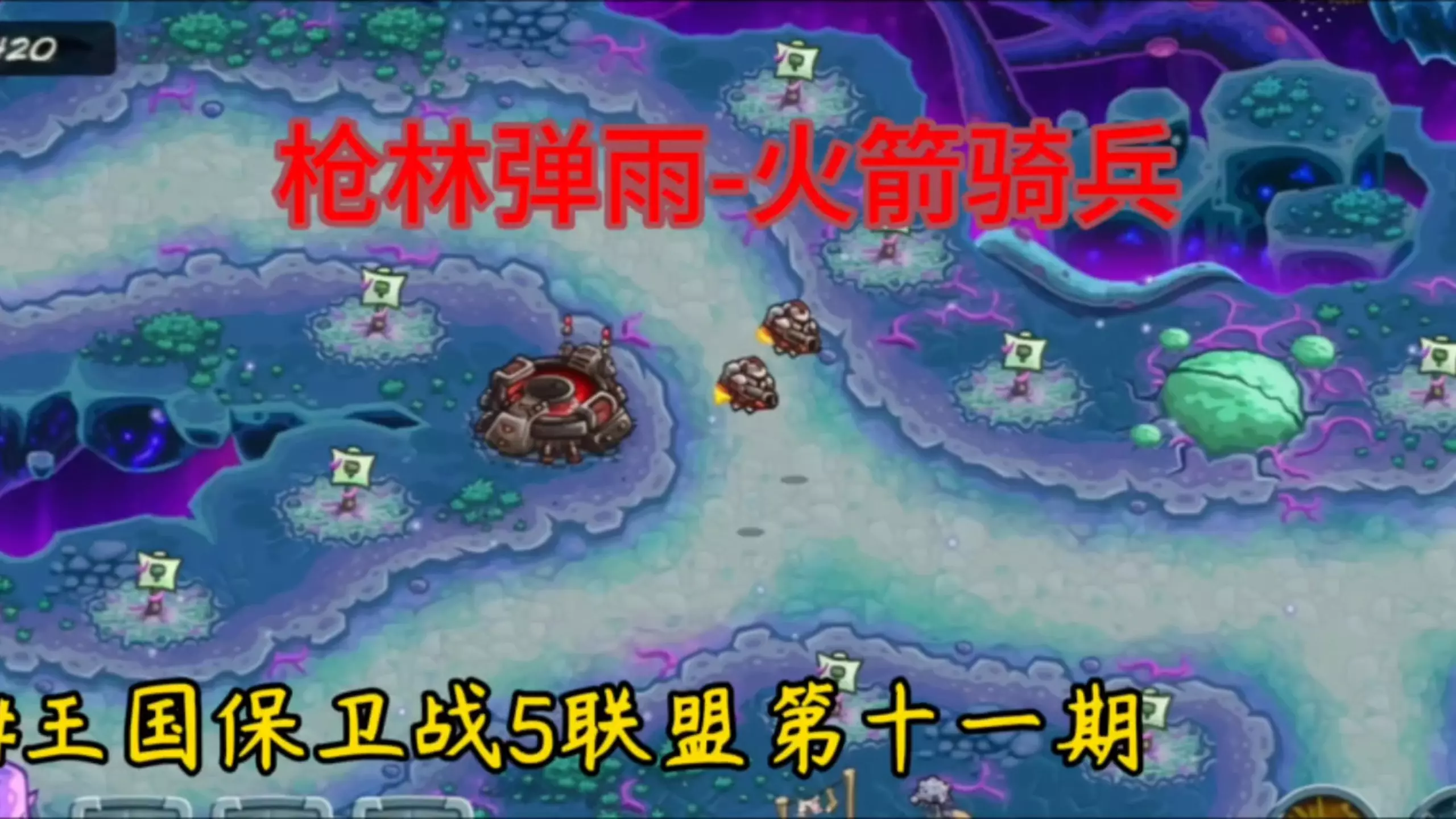 这是《王国保卫战5联盟》万圣支线的实况解说内容,展示了游戏内防御塔配置、关卡战斗等画面,解说声音较小,作者表示下期会调整。