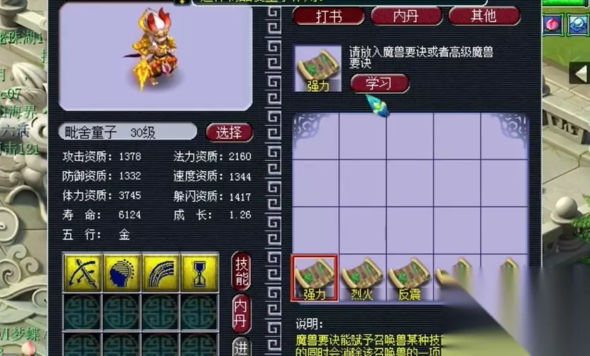 合成毗舍童子是使用炼妖功能将两只召唤兽作为材料进行合成,合成后的新宝宝造型将随机继承父母之一,其技能数量大致为父母技能总数加减2,最多不超过12个技能,而各项资…