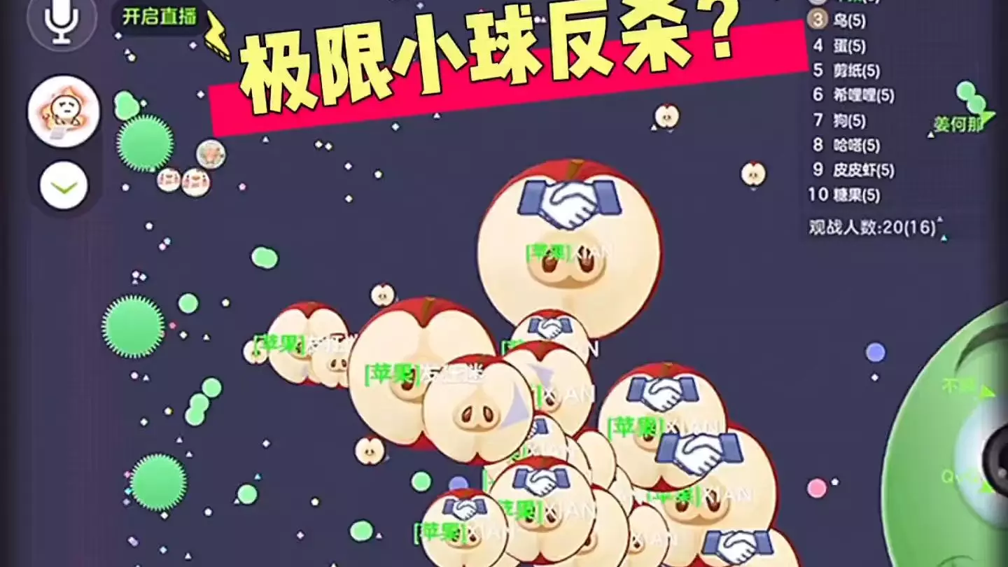 这是一组《球球大作战》的对局直播截图,对局中团队配合默契,指挥节奏清晰压迫感十足,展现了球球大作战高端对局里优秀指挥带领团队运营推进的精彩对局场面。