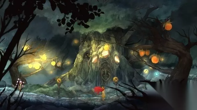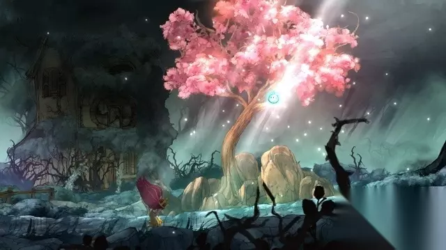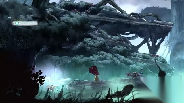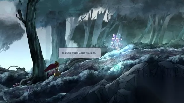 跟随着萤火虫往前走,路边有些晶莹发亮的树丛,轻轻的摇动会抖落一些光球(愿望之光),收集它们可以恢复萤火虫的体力。萤火虫的能力除了照明、还应用于各种谜题破解之中,在战斗中还能缓滞敌人的攻击速度。