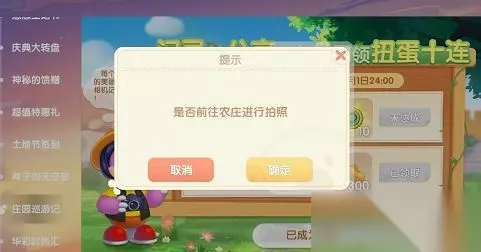 农庄拍照任务攻略流程 1、点开活动中的庄园迅游记的活动 2、点开屏幕左侧中的拍摄素材任务,根据指引到达庄园 3、点击右下角装扮按钮换上记者装的衣服 4、到达开心农场后点击左下角影藏按钮,点击拍照。 摩尔庄园农庄拍照的位置以及任务流程都分享在上面,玩家们可以多了解一下这个任务的完成方法。
