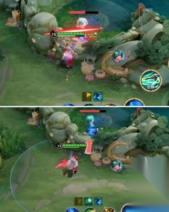 【卡墙追击】 当我们用被动攻击时,如果敌人在我们攻击范围的内侧,那么我们的移动距离就会变短,如此我们的普攻就无法穿过墙体。 但是如果敌人在我们攻击范围的外侧,那么我们被动的闪烁就会直接将我们带过墙体,实现穿墙追击。