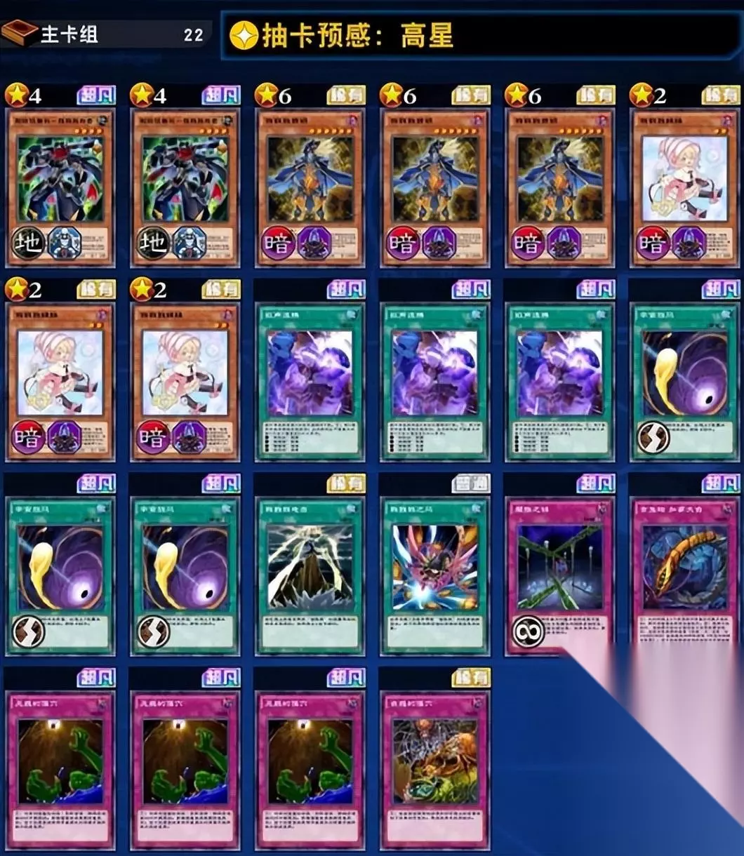 虽然这套构筑常规同调怪兽只有我我我妹妹以及刷拉拉番长,不过经过我我我首领调度之后还是可以循环使用资源的,首领不仅可以复活一组怪兽进行超量召唤,同时还可以作为超量素材配合妹妹做出圣刻神龙进行场面处理。如果六星同调的话还可以做艾可萨甲虫,通过这张卡的效果可以吸走对手墓地中的一只怪兽,加攻并不重要,重要的是打断对手的展开节奏,使其没有墓地资源可用。 同时这套口吃构筑还携带了魔族之链、加拿大虫以及无底等打断卡牌,拦停展开能力一流,很多构筑在实战中很难在拟声卡组手里占到便宜。这套构筑本身强度非常出色,而且进攻性相当强悍,如果大家对此感兴趣的话,不妨来试试看吧!