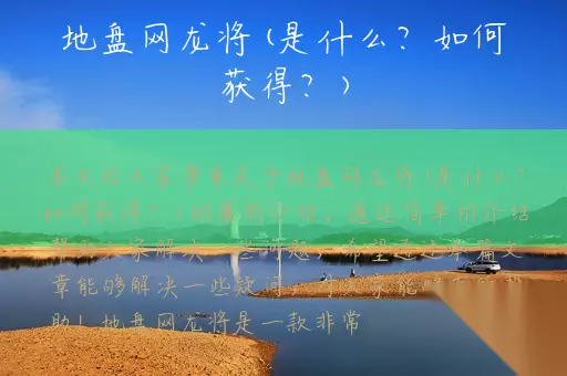 如何获得地盘网龙将? 首先,你需要去游戏官网进行注册,注册成功后,你就可以下载游戏客户端了。下载完成后,你需要安装游戏客户端,并进行账号登录。 接着,你需要选择一个角色,并进行游戏教程。在游戏教程中,你将学习到游戏的基本操作和技能,这些知识对于你后期的游戏发展非常重要。 完成游戏教程后,你就可以开始进行游戏了。在游戏中,你需要不断地进行战斗,通过战斗来提升自己的实力。同时,你还需要不断地升级装备和技能,以便在战斗中更加得心应手。 除了通过游戏来获得地盘网龙将,你还可以通过充值来获得更多的游戏资源。充值后,你可以获得更多的游戏币和道具,这些资源可以帮助你更快地提升自己的实力。 总结 地盘网龙将是一款非常受欢迎的游戏,它提供了丰富的游戏内容和多样化的角色选择,让玩家可以享受到不同的游戏体验。如果你想获得地盘网龙将,你可以通过游戏官网进行注册和下载,然后进行游戏教程,最终不断地进行战斗和升级来提升自己的实力。同时,你还可以通过充值来获得更多的游戏资源,加速你的游戏发展。 感谢大家的阅读,如果觉得本文内容对您有所帮助的话,别忘了收藏本站哦!