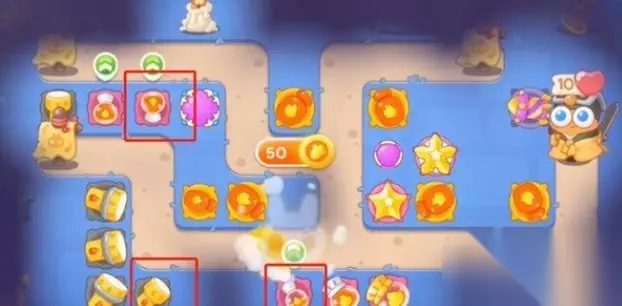 3、第三波右侧宝箱清掉变魔法球,再加一星星,左侧加一火瓶子。