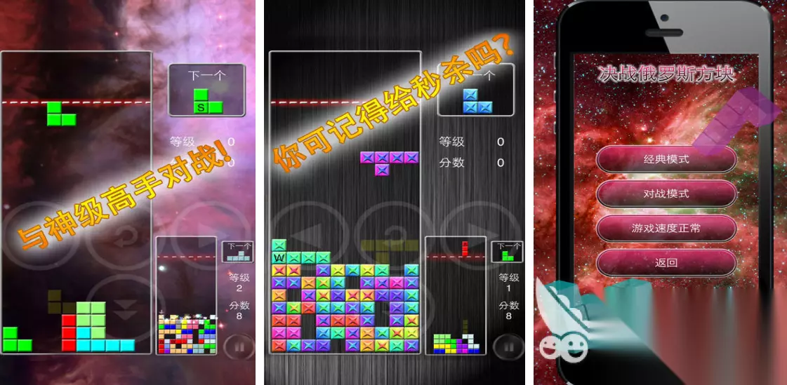 《俄罗斯方块消消消》也是一个很少见的3d俄罗斯方块消除游戏,也正是因为立体的画面而吸引了很多玩家。玩法与传统俄罗斯方块一样,但有经典、限时、障碍和策略对决等多种模式。每个模式中还设有不同的道具,比如炸弹和冰冻等,而这些道具都可以加快你通关的效率。游戏中的各种方块颜色鲜艳,极具有观赏性哦。 高速下载 普通下载 优先233乐园APP下载 3、《决战俄罗斯方块》