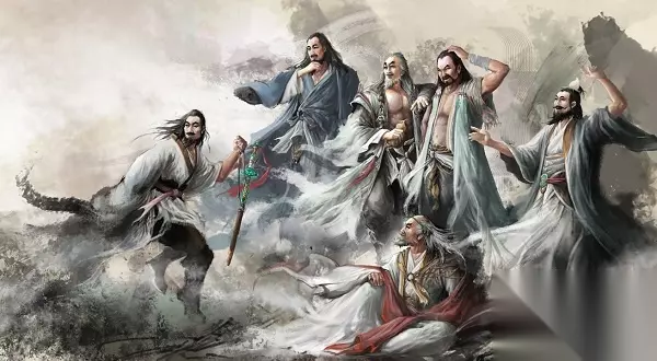 图2·《笑傲江湖》李亚鹏版桃谷六仙 桃谷六仙分别为分别为桃根仙、桃干仙、桃枝仙、桃叶仙、桃花仙、桃实仙。 这六人怪异之极,动不动就把人撕成4片,但是他们也很单纯,很好哄,而且被人取笑“丑八怪”都不知道发怒。