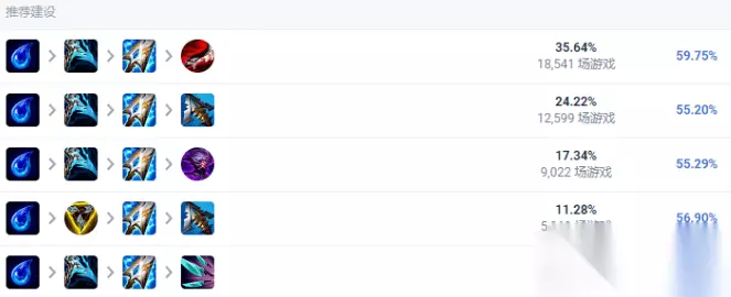对于EZ来说,只有魔宗和耀光是必备装备,其余装备都是可以替换的,千变者贾修就是一个当前版本韩服高分段的常见选择。 前面两件装备还是常见的吸蓝刀魔宗,但比起出幕刃的极端输出,EZ在生存压力较大的时候用一件优质防装做神话能防止自己被秒,配合E技能拉扯更有效果。 当然,如果对面的手比较短,平时碰不到EZ,防刺客爆发出王冕是更有性价比的选择。