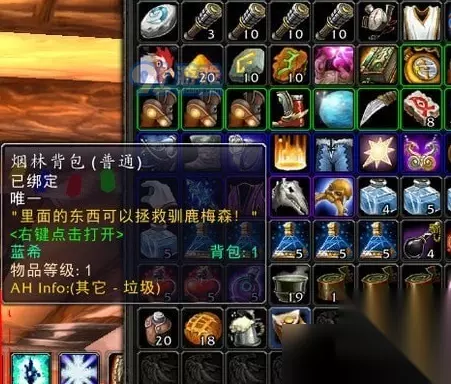 接完任务后,会获得烟林背包,然后这里面有任务物品,必须要先打开他,才能做任务。你将会获得一包驯鹿之尘。
