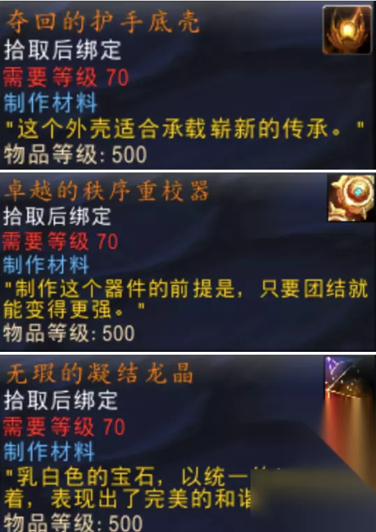第四步:合成最终武器 将上述三个组件(夺回的护手底壳、卓越的秩序重校器、无暇的凝聚龙晶)进行合成,即可获得纳兹乌罗无拘传承。