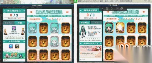 攻略分享如上所述,冒险家们掌握这招百分百正确翻牌姿势之后,就能轻而易举地获得该活动的奖励了。 在游戏界面有一个剩余翻牌次数,这个并不是说打开一张牌就消耗一次,而是每翻三张算一次翻牌机会,总计9次翻牌机会,如果用完了还没有成功将12张牌全部翻过来,那么活动挑战失败,这样没办法获得游戏奖励,参与奖励都没有,所以这个活动出来后,得看看有没有大佬制作去隐藏补丁,要不这个活动我就放弃了。 挑战成功奖励