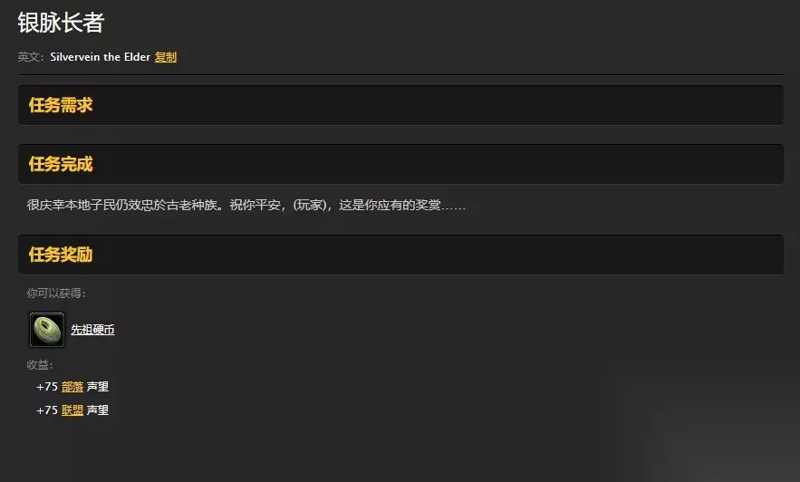 银脉长者先祖硬币任务内容 Tags:魔兽世界怀旧服攻略大全