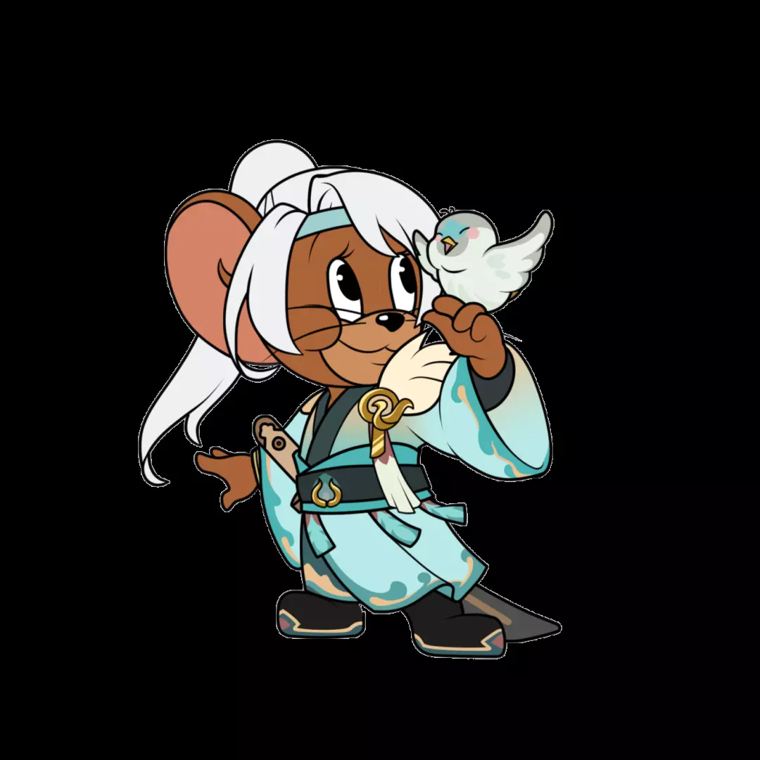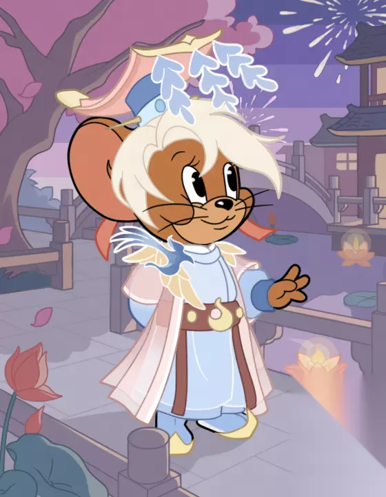 (AP级皮肤,国王杰瑞·鹊桥相会) 一袭飘逸古装的国王杰瑞今天看起来格外不一样呢!蓝粉相间的华美衣着、寓意美好的喜鹊肩饰......为了会见心爱之人,国王杰瑞·鹊桥相会精心装扮了一番,看起来比平时更高贵优雅了,不知他今夜能否在鹊桥上遇到命中注定的那个她呢?