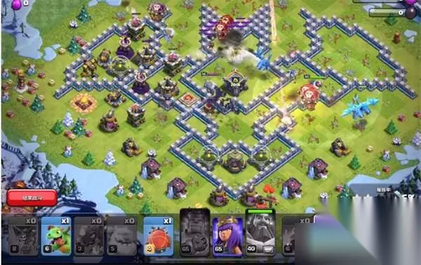 部落冲突十周年挑战赛2018满星通关攻略 1、首先先放置电龙将上方的老六电塔打掉,上方12点钟方向在清个边。 2、然后放蛮王将防空火箭打掉,之后大部队从12点到3点方向平推这里的建筑。 3、留个气球在9点帮英雄分点伤害,苍蝇汽球9-12一字划,电龙下半区辅助放。 4、下面x弩处4地震,下2组4武神2天使,打到中间下4野猪,2毒药杀王杀援。