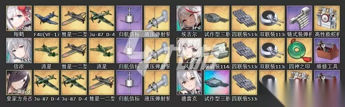 阵容搭配方面,在白龙还没成型前,可以组成信浓、翔鹤、皇家方舟改的三航阵容,起飞顺序翔鹤、皇家方舟改、信浓,三者起飞时间差尽量控制在1S以内。前排的的话则可以用德雷克、风云、柴郡这样的组合。风云可以替换成有空袭引导的日船驱,柴郡可以替换埃吉尔。