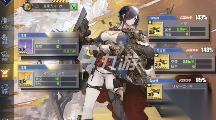 因为皇家方舟未改造之前的强度就已经很高了,所以改造提升的幅度数值策划也把控的很好。属性方面比较重要的是装填增加了15点,这让调速更容易,航空值增加35点,命中增加5点,鱼雷机效率提升3%,轰炸机效率提升15%。 技能方面新增的“破灭枪弹”可以发射特殊子弹和剑鱼弹幕鱼雷机构成的弹幕,3枚连发穿甲弹命中可降低敌方防空,使其获得受驱逐、皇家先锋伤害提升的debuff。6枚平行雷则是纯输出向的,虽然提升也并不多。