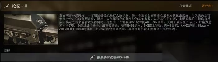 点击查看详情>>>《逃离塔科夫》枪匠任务7怎么改 枪匠任务7攻略 【枪匠-8】 关键字提取:一把AKS-74N 突击步枪,人机工效大于65,后座综合小于275,不超过十个格子