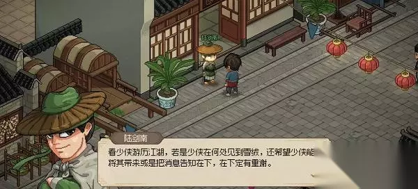 大侠立志传陆剑南入队攻略 1、主角40级后,来到楚襄客栈门口,遇到陆剑南对话,触发帮他找猫的任务。