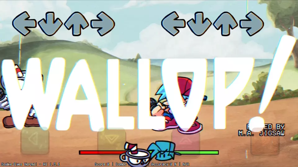 这是《周五夜放克》的游戏内容分享,展示了角色Nikusa和另一高个子角色的对战玩法,搭配带感BGM,画面呈现游戏的按键操作界面,还调侃让大家别盯着无关内容,专注游戏里的精彩内容。