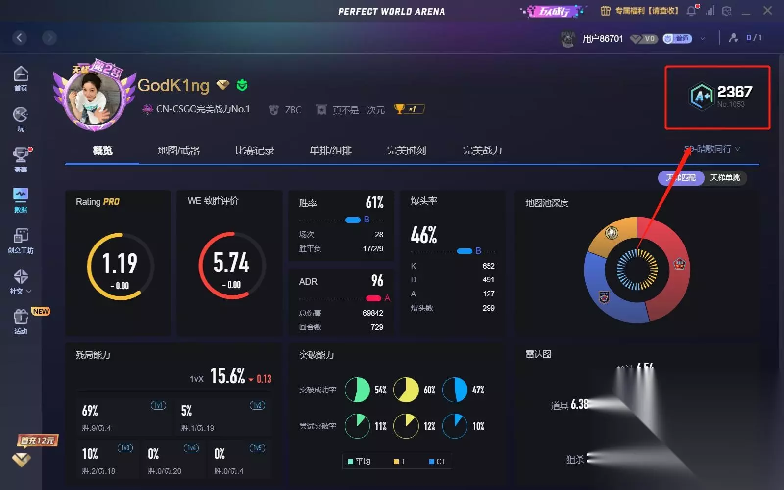 csgo完美世界的段位是需要玩家点开自己的角色面板看到右上角是可以看到自己的段位跟分数的。完美世界平台是根据分数来定段位的,玩家需要打完十把定级赛后才可以看到自己的段位。