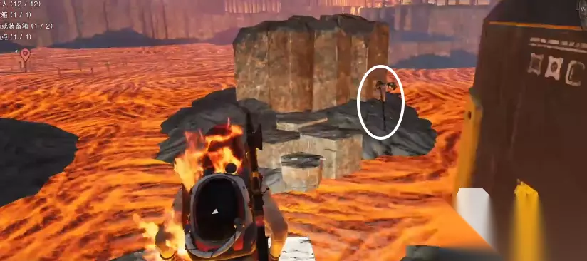 食谱可以直接拿,但武器箱的话因为一直有一个精英怪跟着来不好开启,可以从食谱放置的铁桶旁的铁架子上爬到一旁的平台上,站在平台上卡着打下面的精英怪就很轻松了。