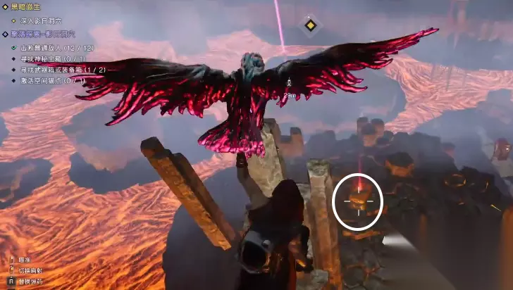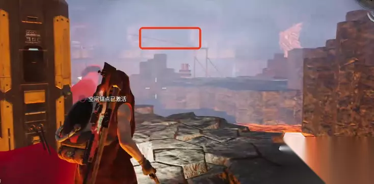 在快到飞到锚点的中途可以看到一个岩浆浮块上有一个神秘宝箱,顺手拿一下,随后激活前方的空间锚点。