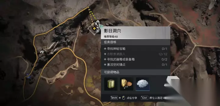 拿完食谱和装备后打开地图标记一下当前的空间锚点·影日洞穴,然后继续沿着洞穴道路向里走。