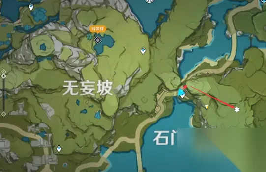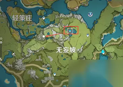 无妄坡 然后就是在无妄坡前面的位置来进行传送,到了就往东转向南的路线走。 在悬崖边上就能找到第二个地灵龛。