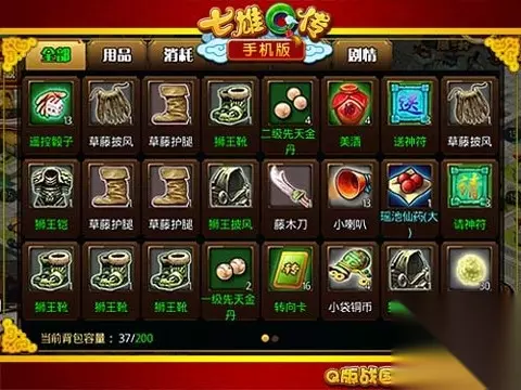 【百宝背包】 《七雄Q传》手机版中背包用于装载道具和元宝,支持对道具和元宝的一些操作。游戏主界面上显示背包界面的入口。元宝显示玩家当前元宝最大数量,点券显示玩家当前的点卷数量,最高显示上限均为6个字符。 (图2)