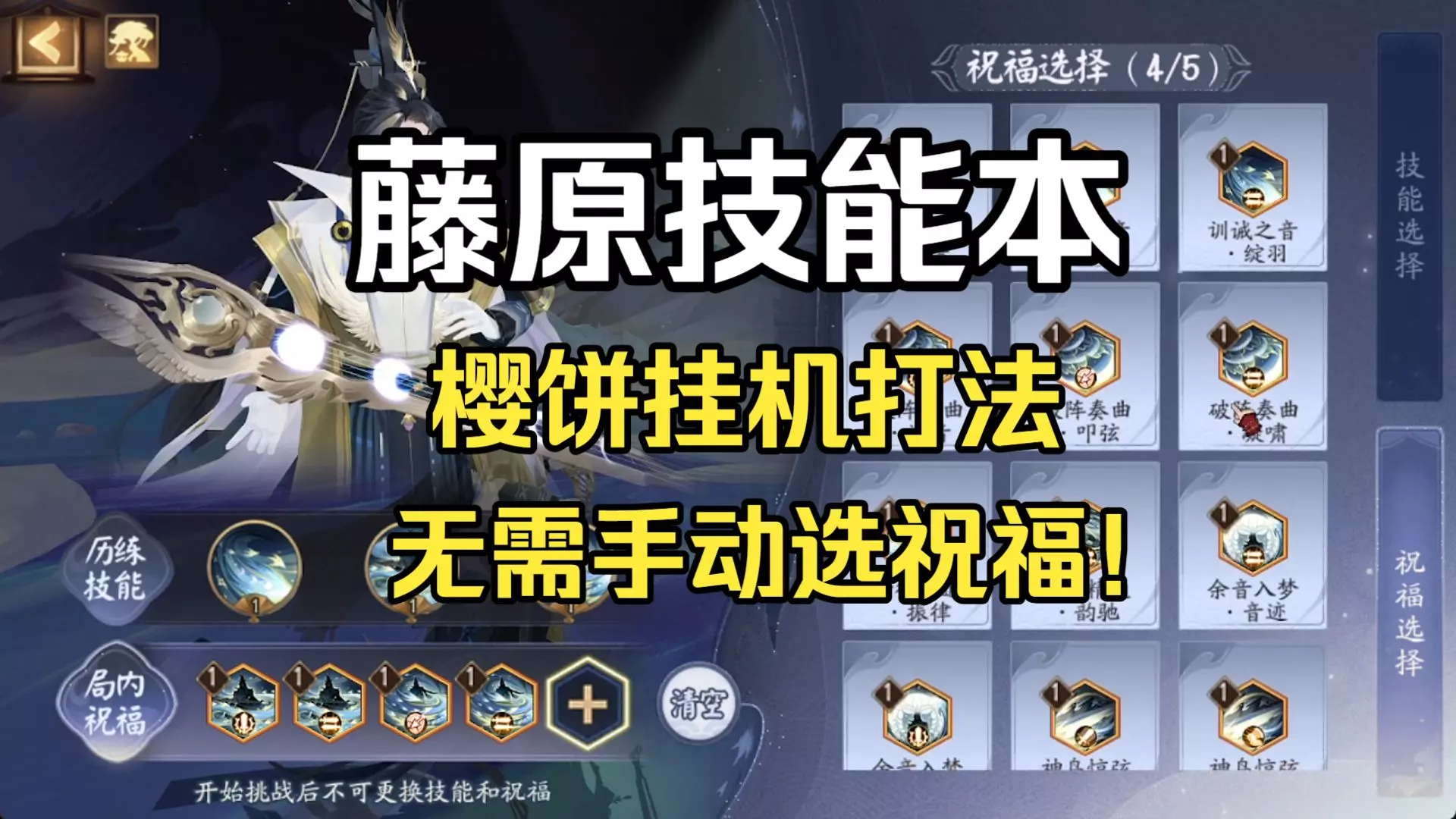 这是阴阳师梦墟秘境藤原道长PVP的超稳定挂机攻略,仅需将祝福泛音升级到2级即可挂机,10层内2、4、7、9层可选择祝福,选到泛音前可手动打,还推荐了凝啸等其余祝福,搭配指定阵容即可稳定挂机。