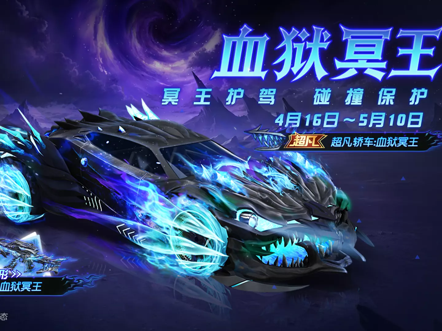 幽冥裂隙破开长夜,狱火席卷荒野!全新【血狱冥王】系列军需,4月16日0点正式登场~ 【超凡轿车:血狱冥王】幽蓝鬼火席卷车身,加速时冥焰轨迹燃彻暗夜,尽显战场威压…