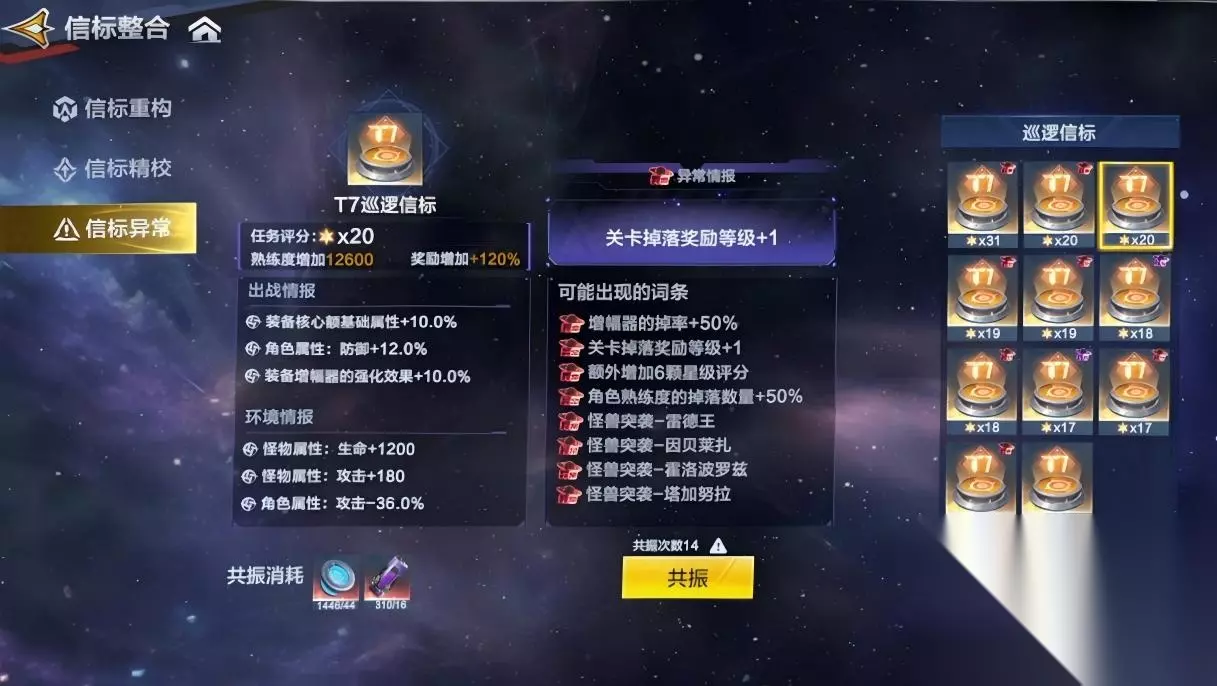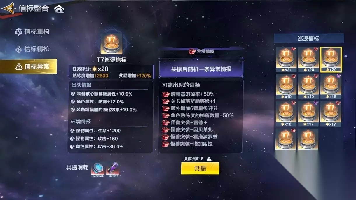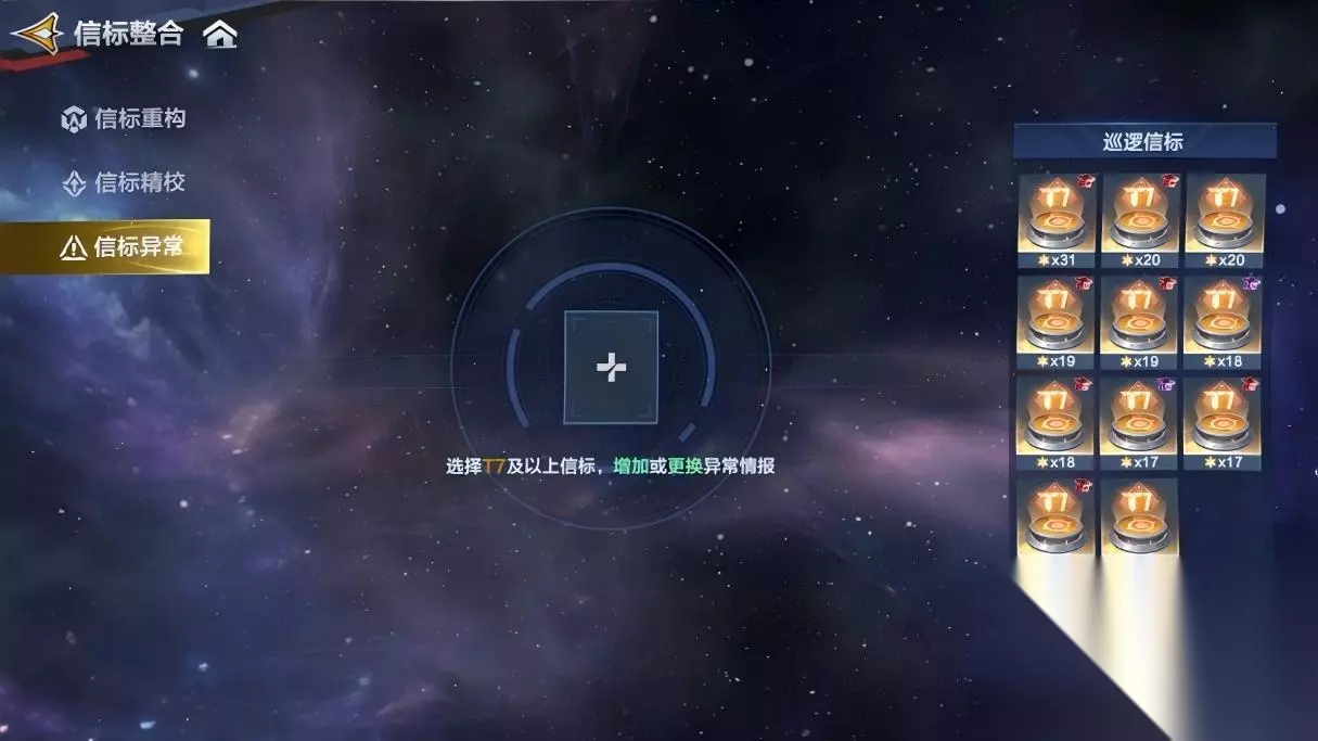 信标异常:强化高阶信标,轻松应对战斗 信标异常是通过共振为T7及T7以上的信标随机添加或替换一条异常情报,若原信标无特殊词条,将直接新增一个词条。 选择一枚T7及T7以上的巡逻信标