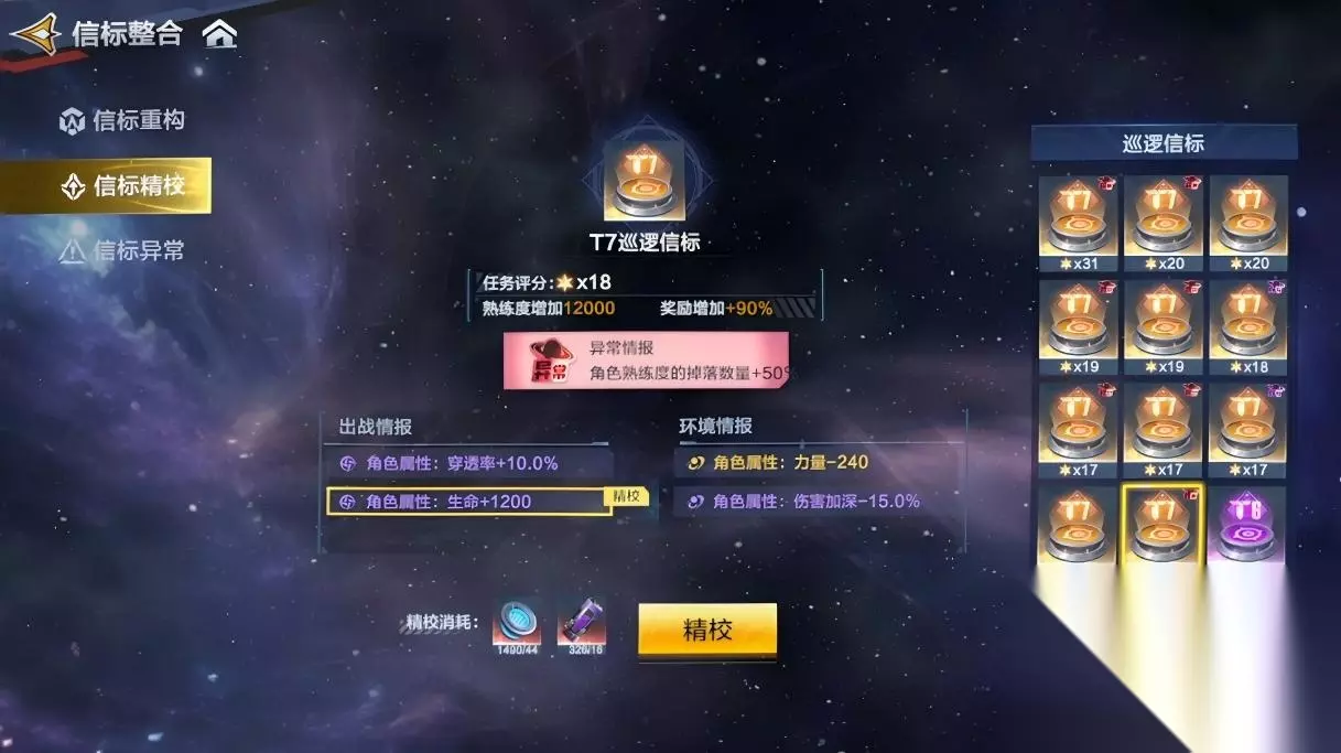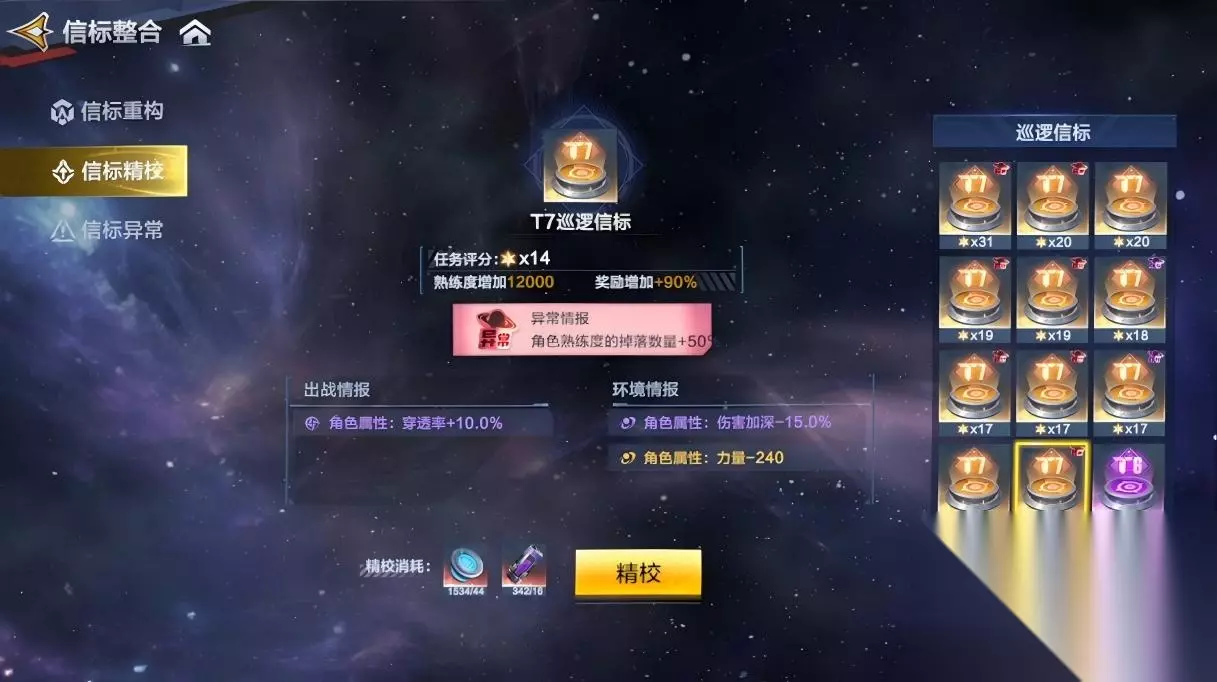 点击精校(需要使用功勋和道具:信标稳定剂,可通过超银河征途获得)
