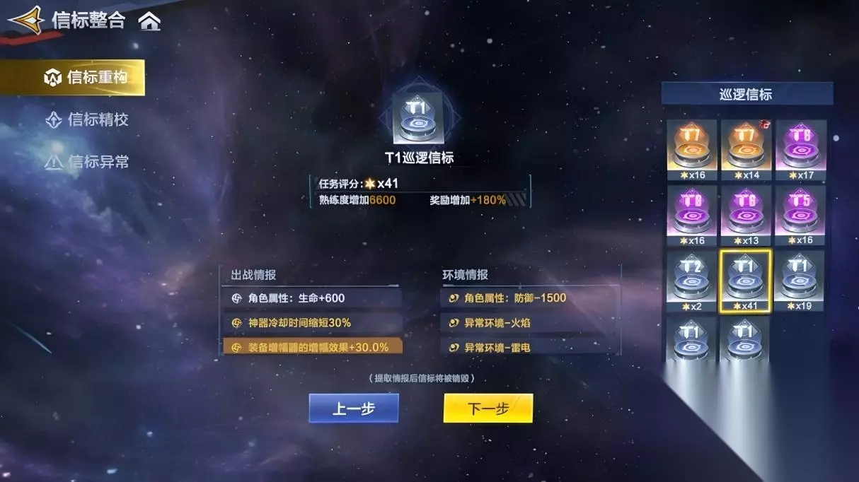 信标重构:集中优质情报,告别信标浪费 信标重构可提取巡逻信标中任意情报,提取后信标将被销毁! 选择一枚次要巡逻信标