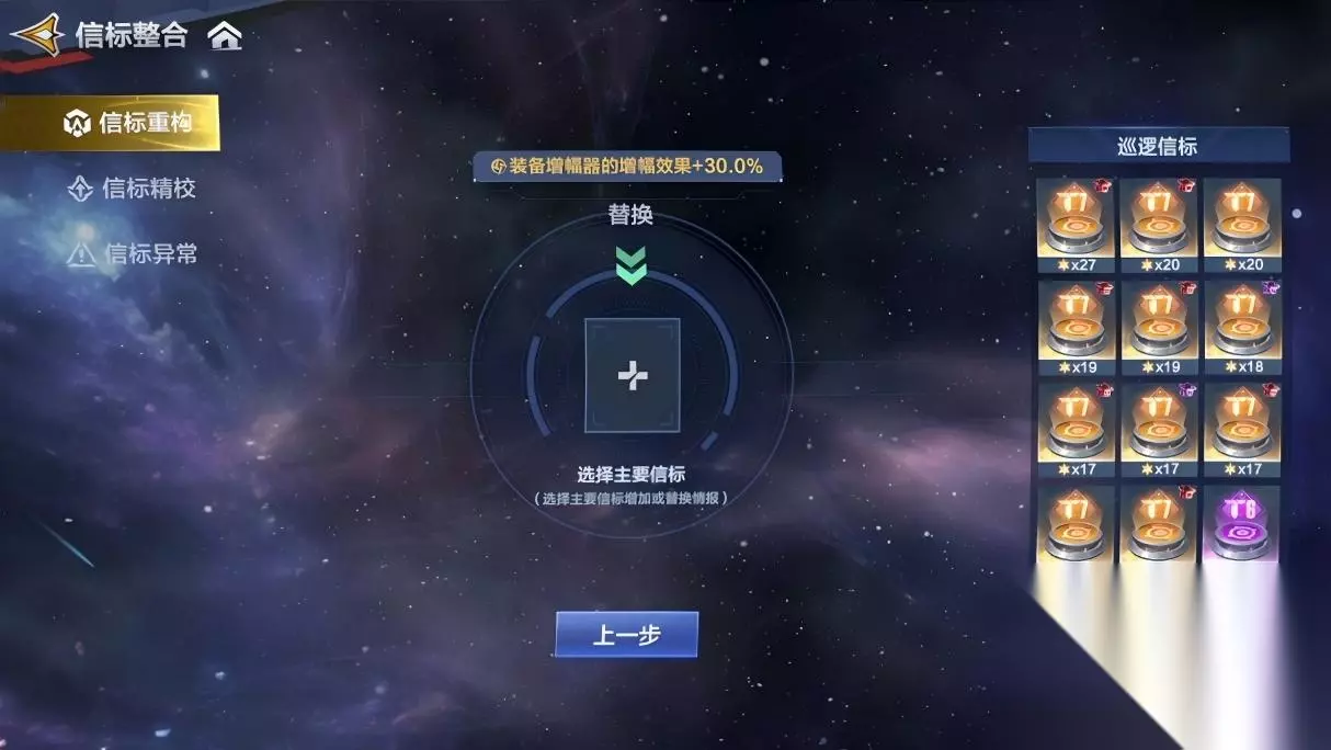 信标校准:灵活替换情报,定制专属属性 信标校准可使用道具对信标内任意情报进行随机替换或新增! 选择一枚巡逻信标
