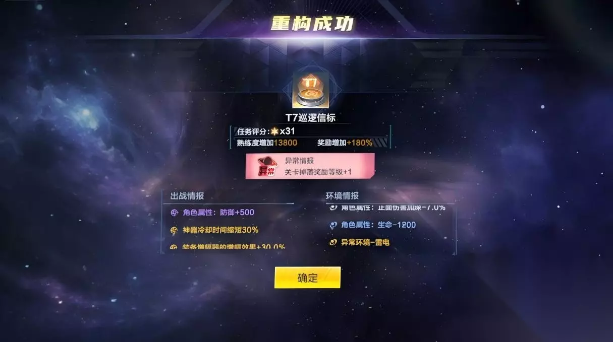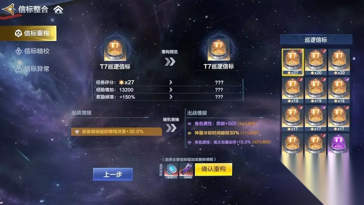 点击确认重构(需要使用功勋和道具:信标稳定剂,可通过超银河征途获得)